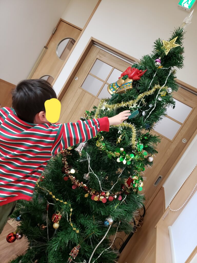 12月初めに「とれいん」のカフェルームに大きなクリスマスツリーが登場し、子どもたちは目をキラキラさせてジングルベルを口ずさみながら好きなオーナメントを飾り、クリスマスが待ち遠しい様子でした。